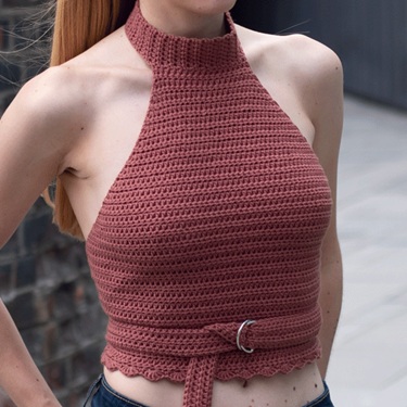 The Violet crochet halter top pattern is a bold and playful design featuring striking cutout ladder details down the front that add a modern twist.