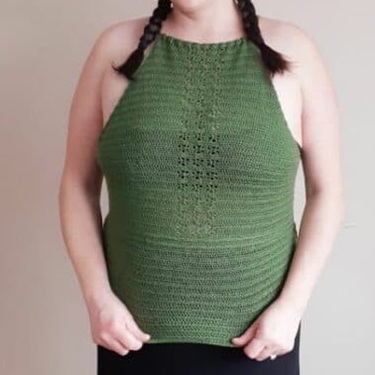 This crochet halter top pattern is a lightweight and casual design, perfect for summer wear.