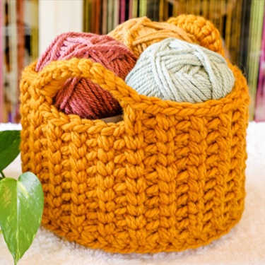 Crafted with chunky yarn and simple stitches, this basket holds its shape beautifully while providing ample texture.