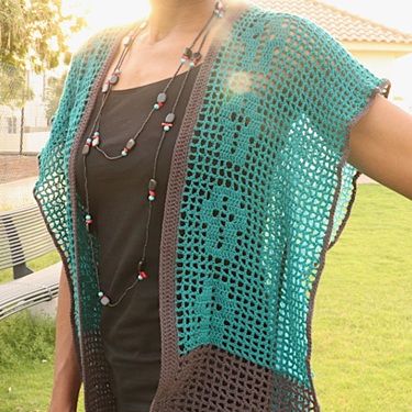 The Freedom Cardigan is a breezy and stylish layering piece that combines modern design with classic filet crochet.