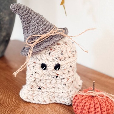 This Country Ghost Amigurumi from StringyDingDing is full of folksy Halloween charm!