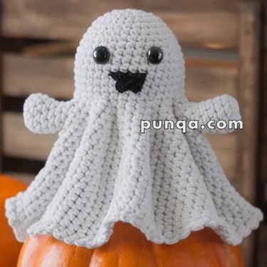 This charming amigurumi ghost is a delightful Halloween addition, featuring wide eyes, a sweet smile, and playful arms that bring it to life!