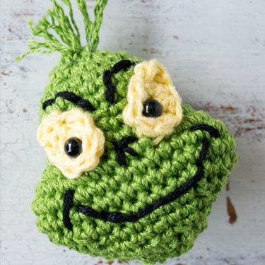 Featuring a cheeky embroidered grin, bold yellow eyes, and a playful tuft of green yarn hair, he’s a fun and fast holiday project.