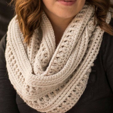 This gorgeous infinity scarf combines texture and warmth using a beautiful drop-stitch crochet technique.