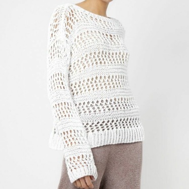 With its oversized fit, wide sleeves, and playful dropped stitches, it’s a breezy layering piece that drapes like a dream.