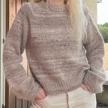 Designed with a feminine silhouette and soft mohair-blend yarn, this sweater is worked flat and seamed, making it a great step up for beginners wanting to build confidence.