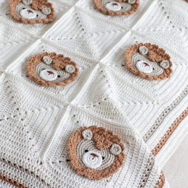 Made from simple granny squares with adorable lion appliqués, this blanket is perfect for adventurous beginners ready to try color changes and applique work.