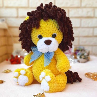 Designed in a chubby, standing pose with chunky chenille yarn, this lion is a dream to hold and cuddle.