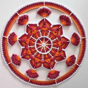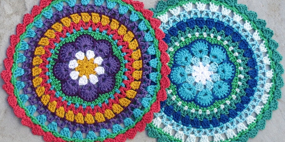 Each mandala offers a chance to play with yarn shades, making it an excellent stash-busting project.