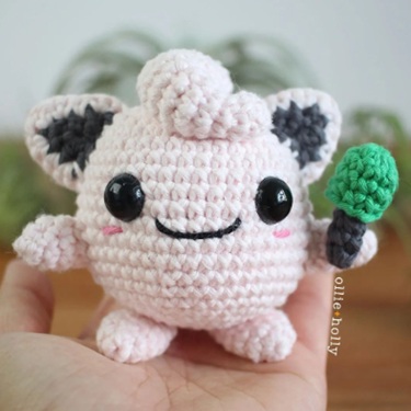 This adorable Jigglypuff amigurumi Pokémon crochet pattern is the perfect mix of cute and fun, featuring big black eyes, a sweet smile, and a little microphone for singing.