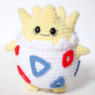 This sweet Togepi amigurumi pattern captures the baby Pokémon perfectly with its cheerful smile, star-shaped head, and iconic white eggshell decorated in red and blue.